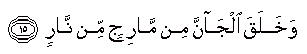 Cinnin Yaratýlýþý | Cinleri öz ateþten yarattý. (Rahman,15) |  | | Cinleri de daha önce zehirli ateþten yaratmýþtýk. (Hicr Suresi, 27) |  |